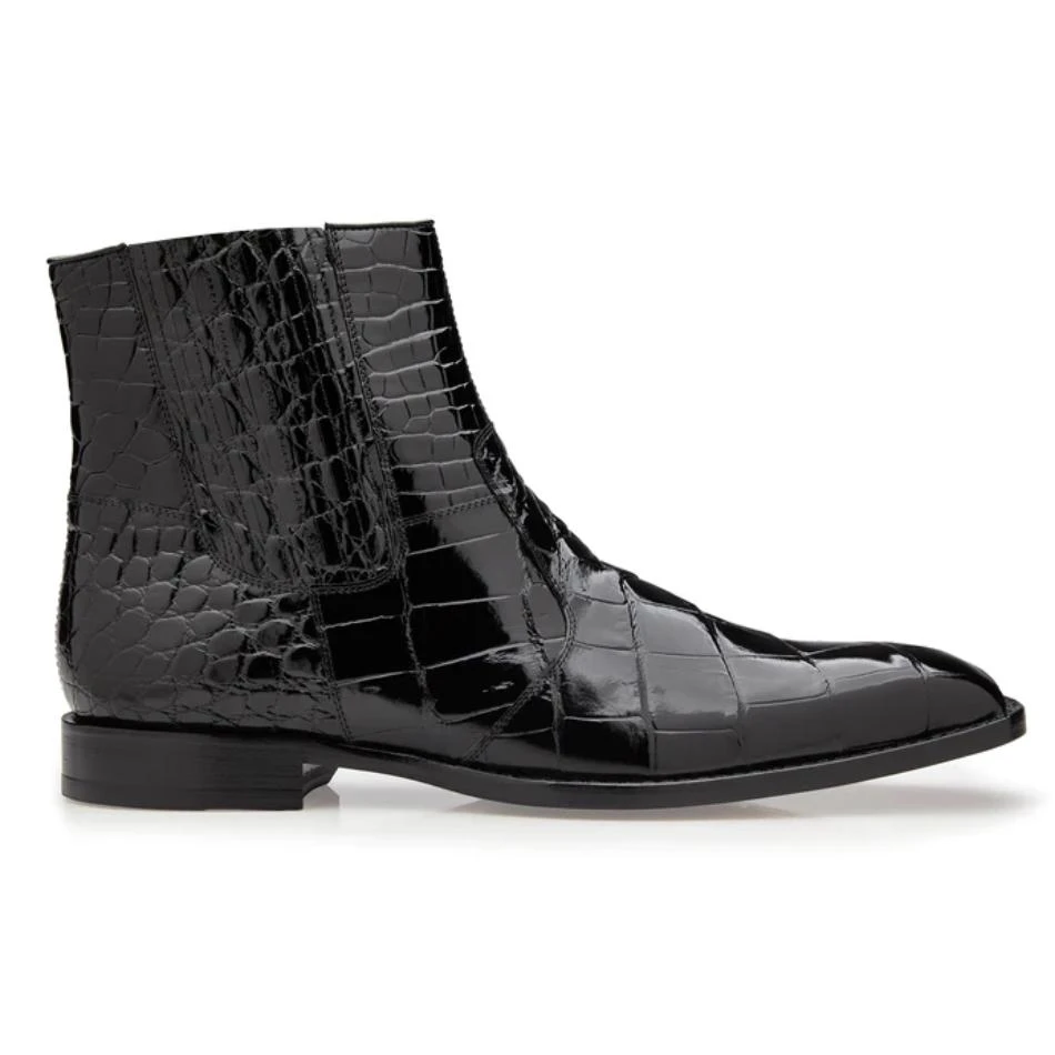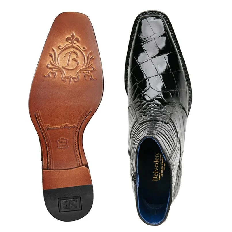 These exceptional quality exotic boots are handmade by one of the finest exotic boots manufacturers, Belvedere. Belvedere offers sensational exotic skin shoes that are completely hand crafted and hand stitched. The inside is a butter soft lambskin leather for superior comfort and the sole is handstitched in leather for excellent traction. The insole is cushioned for added shock absorption. These shoes will fit a Medium width up to a “D” width due to the soft lambskin interior leather.